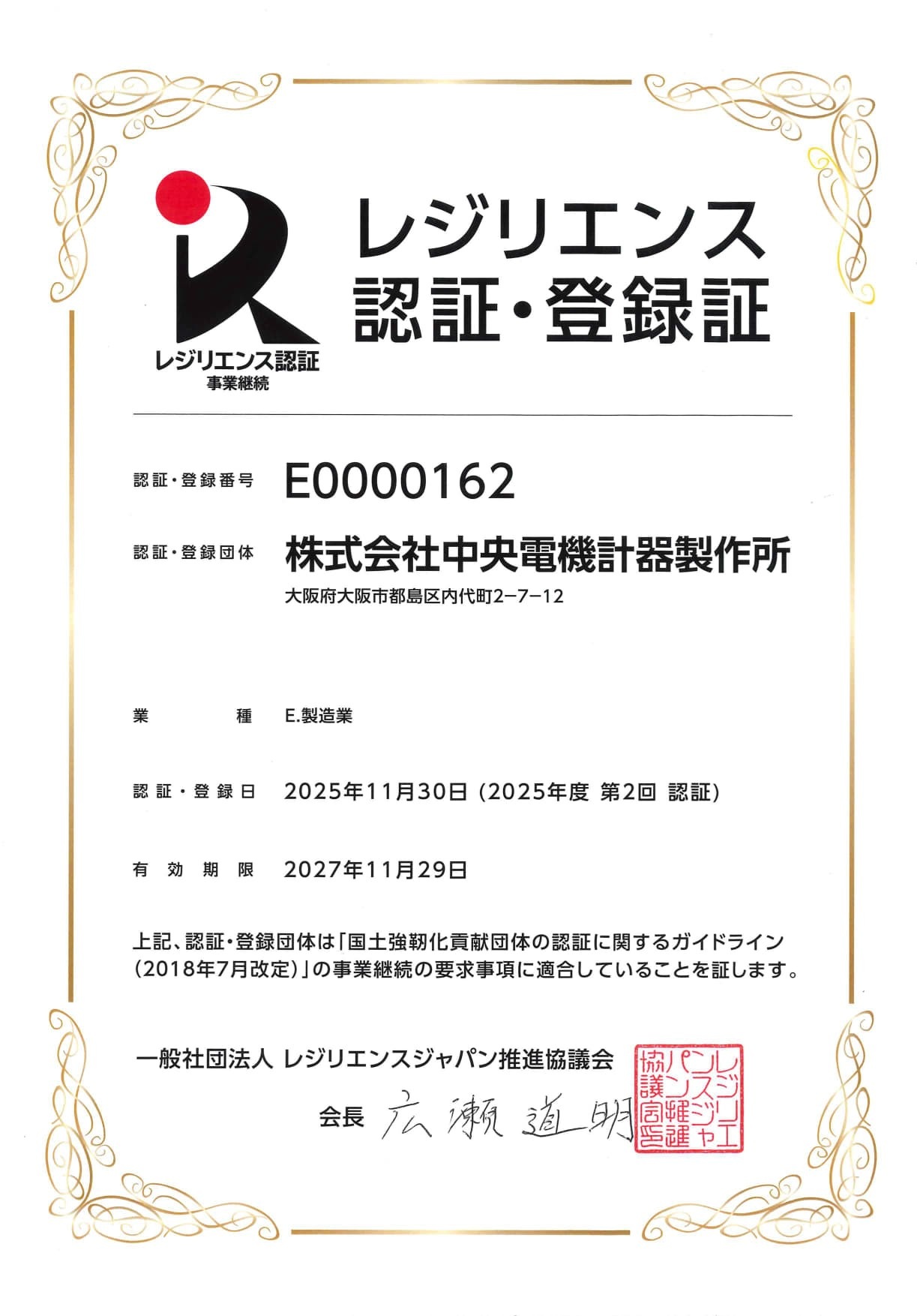 より安心してお取引いただける体制の強化を目指し、レジリエンス認証を取得しました。