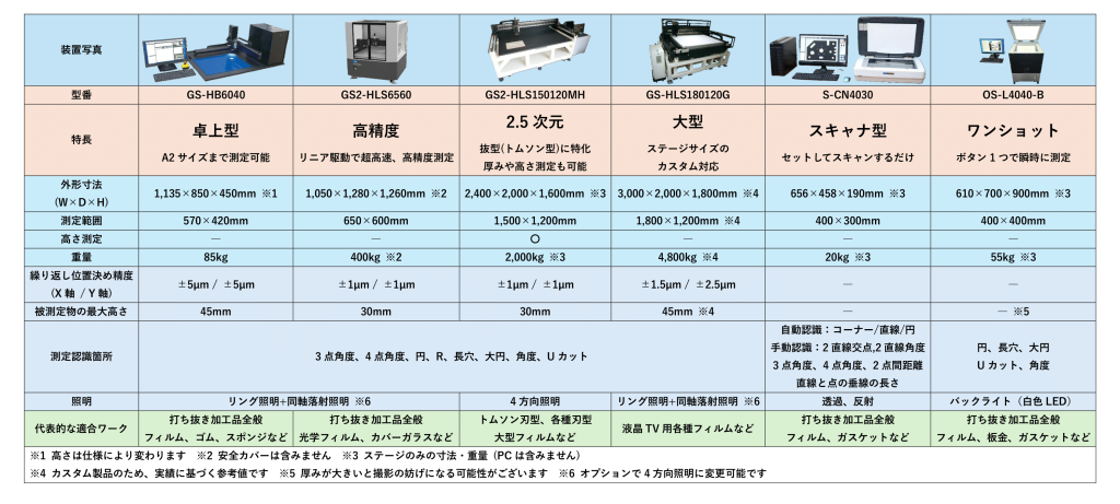 寸法自動測定装置 SmartEdgeシリーズ 比較表